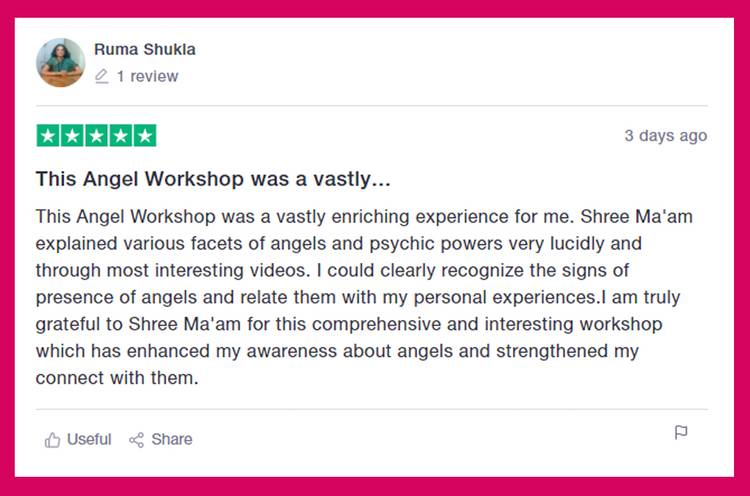 I am an advocate by profession and I was surfing on Instagram and suddenly Shree's program ad popped up and when I saw her face and heard her voice... something from my inside just got trigger and I decided to give it a shot... I attended Shree's program... and since then I am regularly practising Angel Pryers and now my divine connections have become so strong that even when I am out... for my cases I always have this feeling that my angels are with me... thank you Shree for introducing me to such a wonderful world of Angels. God bless u more